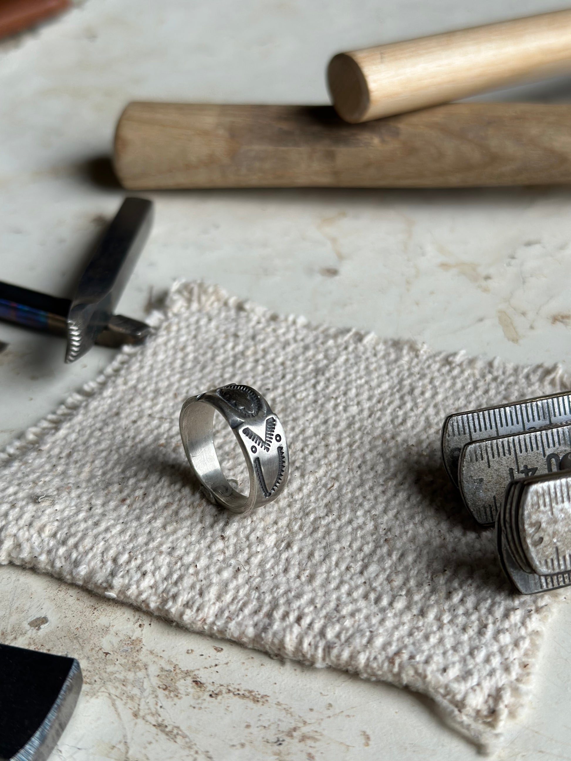 • Corps de bague frappé d’estampe faite à la main